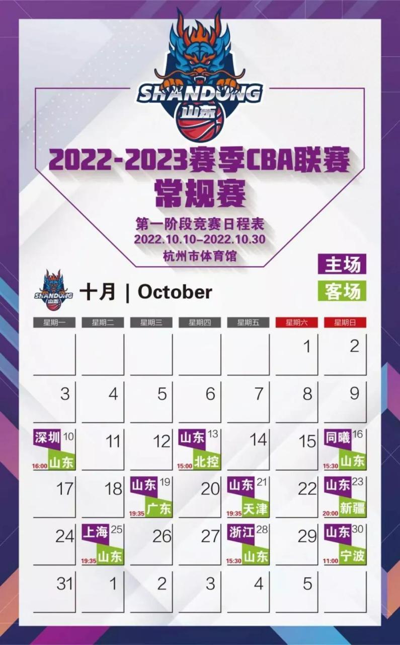 通过了解山东男篮的赛程,球迷可以提前规划观赛行程,不错过任何一场精彩比赛。
