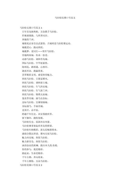 马拉松,是一场挑战自我极限的征程,也是一场传递正能量的盛会。在这场运动中,无数跑者以坚韧不拔的毅力,诠释了什么是坚持,什么是超越。今天,就让我们一起来分享那些激励人心的马拉松正能量句子,为你的跑步之路注入无限动力。