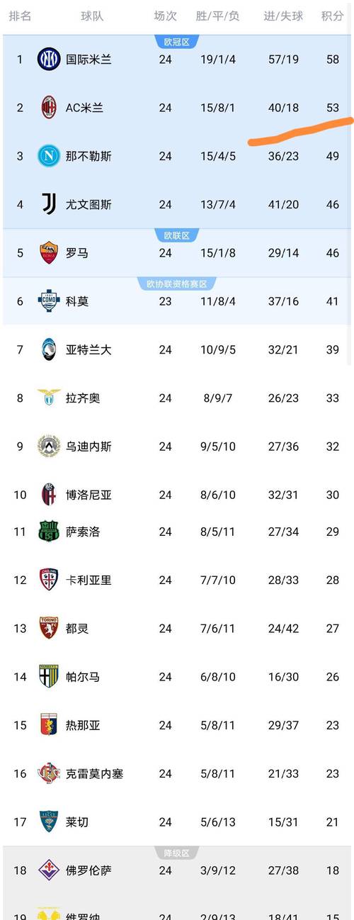 七、意甲联赛积分榜的悬念与看点