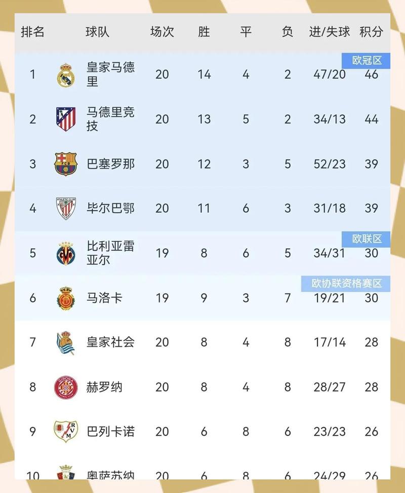 在西甲联赛中,积分也是决定球队晋级的关键因素。每个赛季,积分榜上的前六名球队将获得欧洲冠军联赛的参赛资格。
