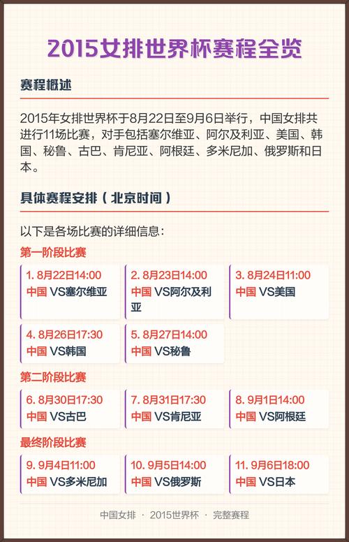 1.2比赛地点:比赛将在各国女排的主场进行,具体地点请关注官方公告。