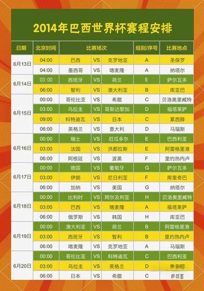巴西世界杯比赛时间:一场足球盛宴的时间表揭秘